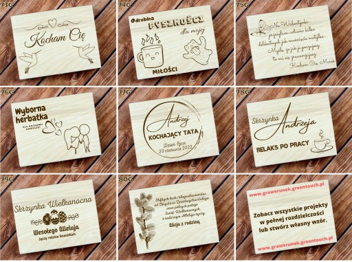 Wybierz wzór skrzynki oraz podaj tekst do grawerunku.