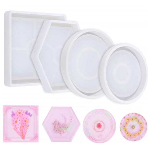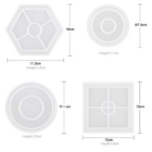 - formy silikonowe - 4 sztuki (podstawki pod kubek: okrągła 87x10mm i kwadratowa 138x138mm)