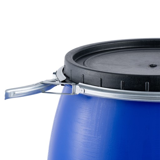 Beczka jest wyposażona w solidne wieko w kolorze czarnym. Dodatkowo, jest zabezpieczona metalową obejmą, która doskonale chroni zawartość przed kontaktem z zewnątrz. Dzięki temu, Twoje produkty są dobrze chronione i utrzymują świeżość przez długi czas.