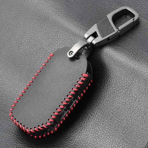 W ofercie posiadamy ręcznie szyte etui, odpowiadające kluczykom wszystkich marek i modeli samochodów osobowych i nie tylko. Kluczyki zostały wykonane z naturalnej skóry w kolorze czarnym, obszywanej grubą, czerwoną nicią.Do każdego etui przymocowany jest praktyczny stalowy karabińczyk, lakierowany na tytanowy kolor.