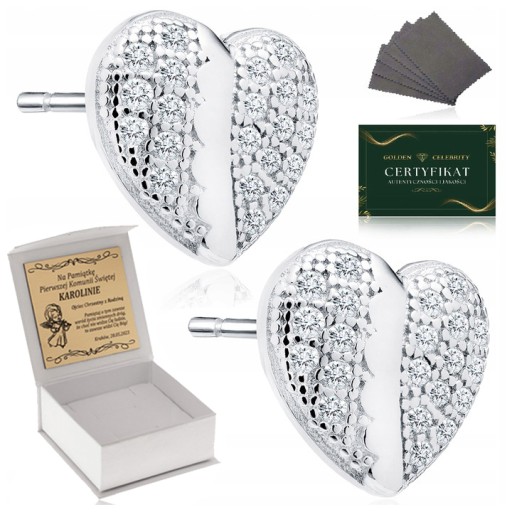 ➡️ KOLCZYKI SREBRNE SERDUSZKA DLA DZIEWCZYNKI 925 NA KOMUNIĘ ROCZEK + GRAWER