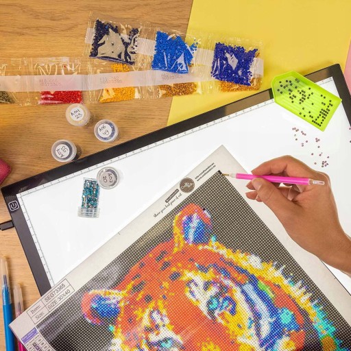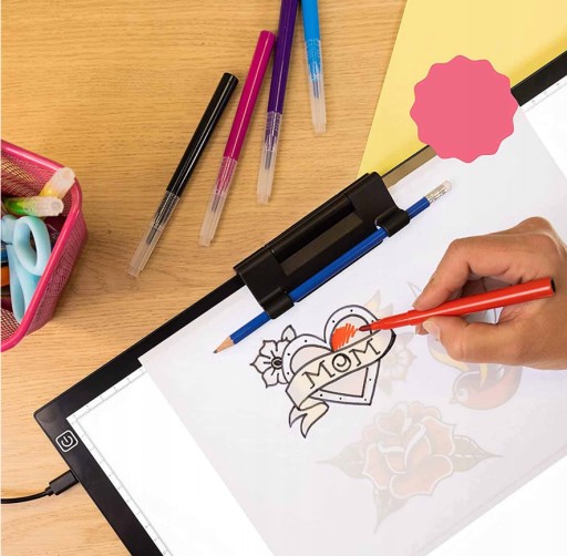Produkt jest bardzo lekki, a jego grubość wynosi około 5 mm. W połączeniu z twardym akrylowym wykończeniem bardzo przyjemnie się nim operuje. Rysunki można wykonywać np. siedząc czy opierając tablicę na kolanach. Twarda powierzchnia pozwala również przymocować rysunki do deski za pomocą klamerek zaciskowych. Wbudowane diody LED generują bezpieczne dla oka oświetlenie, dzięki czemu oczy nie będą się tak męczyć podczas wykonywania rysunku.