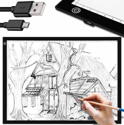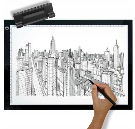 Profesjonalna podświetlana deska kreślarska przeznaczona do sporządzania szkiców oraz rysunków na kalkach i papierze. Dzięki bardzo dobremu podświetleniu LED o natężeniu 300-350 lm arkusz z danym obrazem, który chcemy odrysować prześwietli się na kartkę papieru. Zaleca się aby kartka papieru na którą nanosimy rysunek, nie przekraczała gramatury 200g/m2. W celu polepszenia efektu można przyciemnić światło w pomieszczeniu