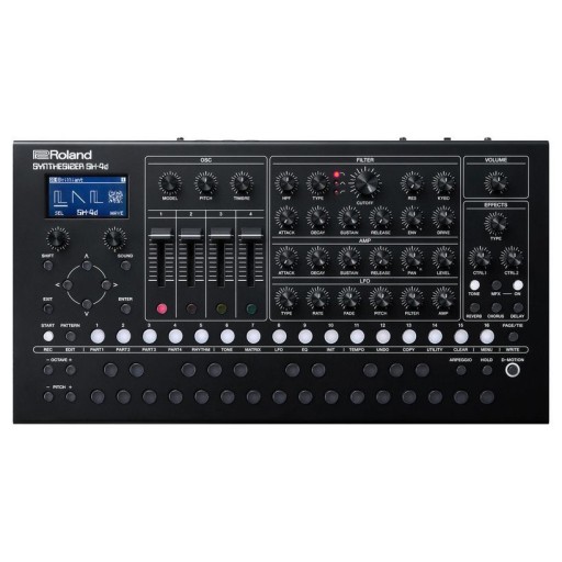 Najważniejszym punktem silnika syntezatora jest jedenaście modeli oscylatorów, które wykorzystują wewnętrzne klasyki, takie jak SH-101 i Juno-106, opanowują klasyczne elementy syntezy, takie jak sync, cross FM i modulacja pierścieniowa, zawierają zmodyfikowane mieszanki (SH-4d, SH-3D), a także obejmują nowoczesne modele, takie jak wavetable, akord, rysunek i próbki PCM. Solidne brzmienie podstawowe jest przetwarzane za pomocą wielomodowego filtra (lowpass, Bandpass & highpass), który dodatkowo wyposażony jest w jednostkę distortion. Filtr i następujące po nim VCA posiadają własną obwiednię ADSR. Nadrzędnym jest synchronizowane z BPM LFO z regulowanym opóźnieniem, które może wpływać na wysokość dźwięku, Cutoff i głośność z różną intensywnością w tym samym czasie. Jeśli to nie wystarczy, można zanurkować głębiej w brzmienie w matrycy modulacji. Część rytmiczna działa niezależnie od ścieżek syntezatora i oferuje 49 predefiniowanych zestawów, a także 64 sloty na własne kreacje. Każdy zestaw perkusyjny zawiera 26 instrumentów, z których każdy może być kształtowany za pomocą dwóch kombinacji fal i innych narzędzi syntezy, w tym EQ, zgodnie z życzeniem. Jeśli chodzi o efekty, SH-4D ma na pokładzie wszystko, co powinien mieć obecny Groovebox. Pięć jednocześnie użytecznych grup efektów Reverb (9 typów), Chorus (5 typów), Delay (5 typów), Master Effect (93 typy) oraz Tone (EQ / Compressor) pozwalają na kreatywne projektowanie brzmień! Dla własnych brzmień SH-4D mieści 256 gotowych miejsc pamięci.