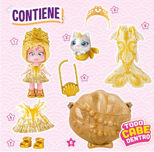Każda z syrenek KookyLoos ma własną muszlę, która jest zarówno sceną do zabawy, jak i małą torebką, którą możesz zawsze mieć przy sobie! W środku muszli czeka mnóstwo akcesoriów i unikalny pupil-zwierzątko. Dodatkowo do każdej laleczki dołączony jest syreni ogon, który możesz w każdej chwili zdjąć, by odsłonić nogi KookyLoos i przebrać ją w ultramodny strój!