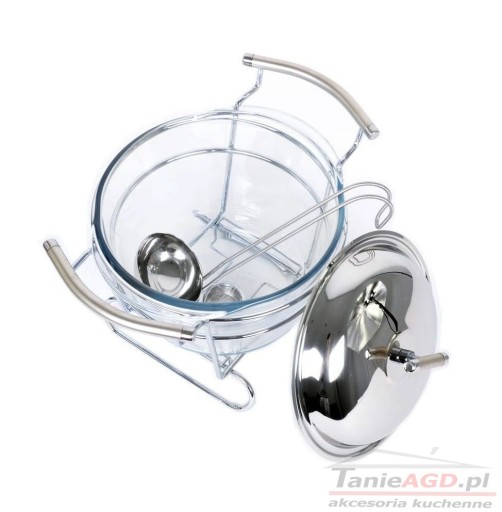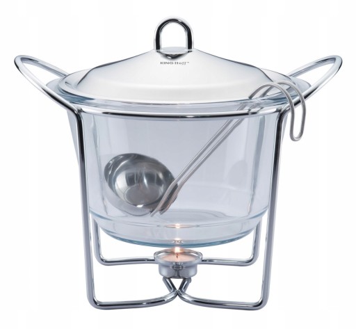 Podgrzewacz stołowy do zupy ze szkła żaroodpornego Sabinex 4.0L firmy KINGHOFF.. Potrawę prosto z kuchni możesz postawić na stole w eleganckim naczyniu żaroodpornym z pokrywą Dzięki podgrzewaczom tealight potrawa będzie cały czas ciepła a Ty swój czas możesz poświęcić gościom Naczynie wykonane jest ze szkła żaroodpornego francuskiej firmy SABINEX Pokrywa i stelaż wykonane z doskonałej stali nierdzewnej 18/8 Zastosowane szkło żaroodporne SABINEX jest przeznaczone do pracy w zakresie temperatur -25° / +300°. Wszystkie części kompletu można myć oddzielnie, co pozwala w łatwy sposób utrzymać go w należytej czystości.