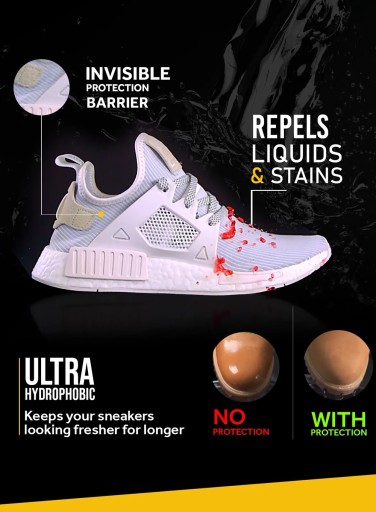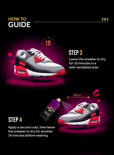 - Spray w żaden sposób nie blokuje materiałów, więc Twoje sneakersy będą swobodnie przepuszczać powietrze