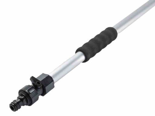 Drążek teleskopowy wykonany jest z wytrzymałego aluminium z miękkimi uchwytami, posiada złączkę wodną z zaworem odcinającym.