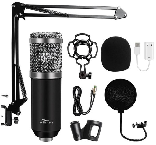 Studio&Streaming Microphoneto kompletny, profesjonalny zestaw do nagrań audio z mikrofonem pojemnościowym dla początkujących użytkowników jak i tych średnio zaawansowanych.