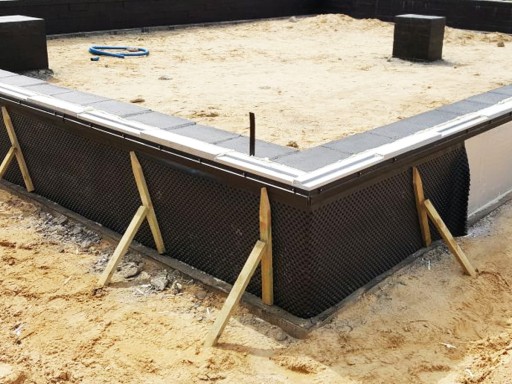 ✅ Montowana pomiędzy ścianą fundamentową a gruntem tworzy barierę przeciwwilgociową, zabezpieczenie przed uszkodzeniami mechanicznymi oraz przed szkodliwym działaniem korzeni drzew i krzewów.