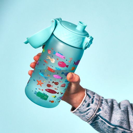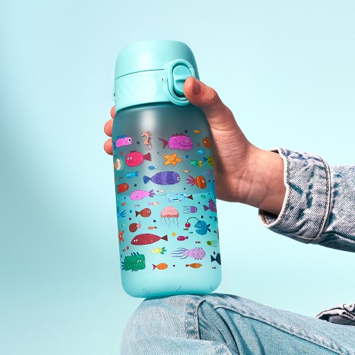 Twoje dziecko będzie chętniej sięgało po wodę, jeśli podasz mu ją w odpowiedniej butelce. Bidon od ION8 z kolorowym nadrukiem rybek, pozwoli mu wyróżnić się na tle rówieśników i zapewni stały dostęp do świeżej wody. Wykonano go z innowacyjnego materiału Recyclon, który jest wolny od BPS, BPA, Bisfenolu A oraz wolna od aktywności estrogenowej i androgenowej. Jest to bardzo odporny, przezroczysty biopoliester z biomasy o bardzo niskim śladzie węglowym. Do produkcji zamiast paliw kopalnych, wykorzystano biomasę co przyczynia się do radykalnej redukcji emisji dwutlenku węgla.