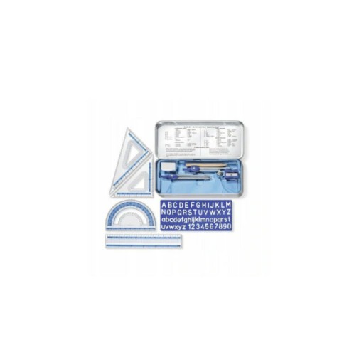 • szkolny zestaw geometryczny w ładnym i poręcznym, metalowym pudełku
