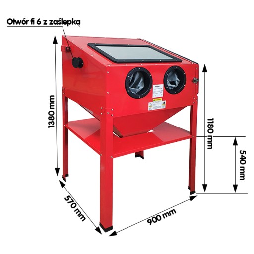- wymiary komory piaskującej (wys x szer x gł): 560 x 860 x 560 mm