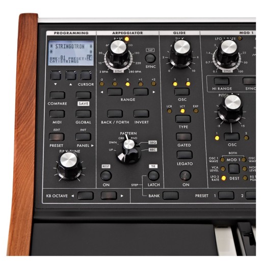 - Arpreggiator/Sekwencer: Up, Down, Order, Random, Latching, Back/Forth, Invert, +/-2 Range, Tie, Rest, MIDI Sync, sekwencer 64-krokowy.