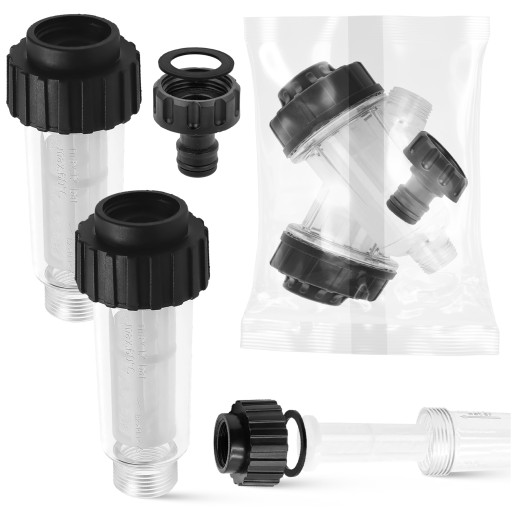 Wysokiej jakości zamiennik oryginalnego filtra do myjek dostarczany jest z przejściówką umożliwiającą natychmiastowe podpięcie filtra do węża.