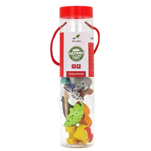 WOOPIE GREEN Drewniane Klocki do Nawlekania Zwierzęta Safari ZOO 13 el.