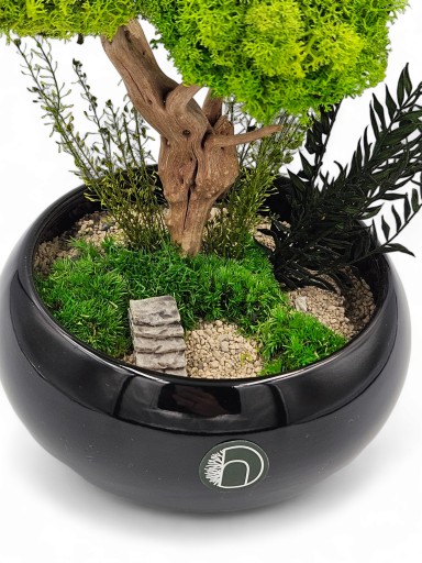 Drzewka w całości wykonane są w 100% z naturalnych roślin, tj. mchów, roślin tropikalnych, azjatyckich korzeni. Rośliny są stabilizowane, co oznacza, że nie potrzebują specjalnych warunków do życia.