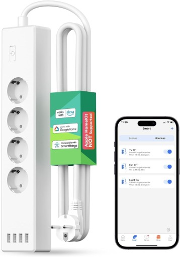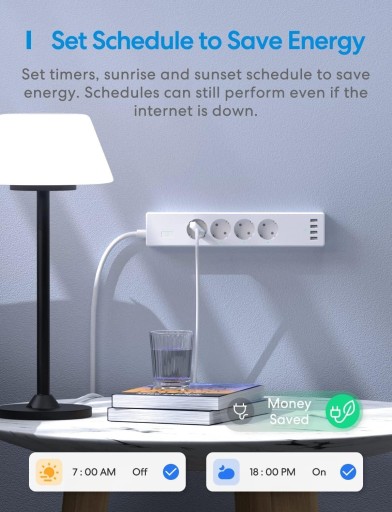 - ZAPROGRAMUJ SCENY JAK POTRZEBUJESZ - Czas na własny inteligentny dom. Ułatwia to planowanie urządzeń za pomocą timerów i odliczań. Ta inteligentna listwa zasilająca automatycznie włącza i wyłącza urządzenia elektroniczne, takie jak światła, ekspresy do kawy, podgrzewacze wody, termostaty, wentylatory i nawilżacze, zgodnie z Twoim harmonogramem dnia.