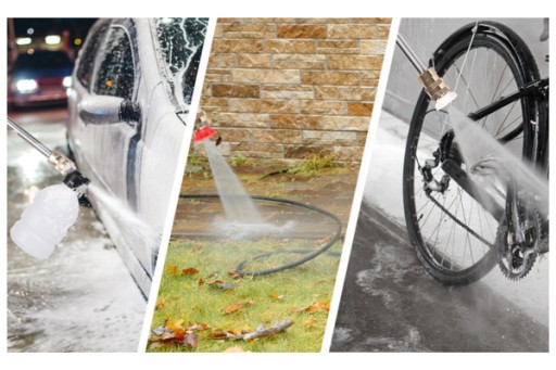 - Idealny do usuwania zabrudzeń z pojazdów, takich jak samochody, rowery, zewnętrzne powierzchnie domowe, schody, ogrodzenia i meble ogrodowe.