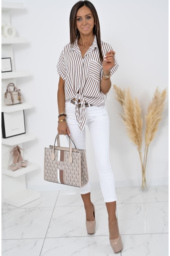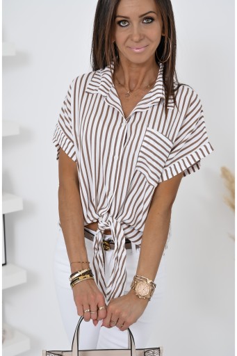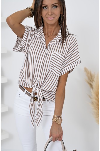 ЛЕГКАЯ РУБАШКА В ПОЛОСКУ, ЗАВЯЗАННАЯ НИЗУ! ВЗ.1