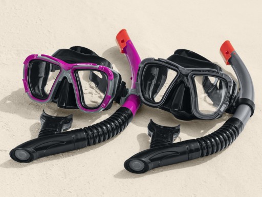 Silikonowy ustnik z rurką posiada zintegrowany zawór odpowietrzający ułatwiający usuwanie wody, zapewni komfortowe oddychanie podczas pływania. Maska z soczewkami wykonanymi ze szkła hartowanego zapewni czysty obraz pod wodą.