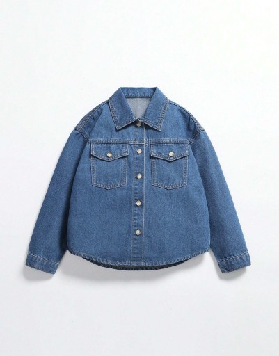 СИНЯЯ ХЛОПКОВАЯ ДЖИНСОВАЯ РУБАШКА С ПРИНТОМ SHEIN PATTERN 140