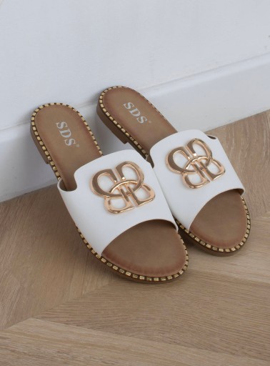 8089 BIAŁE SKÓRZANE KLAPKI DAMSKIE OZDOBA 38