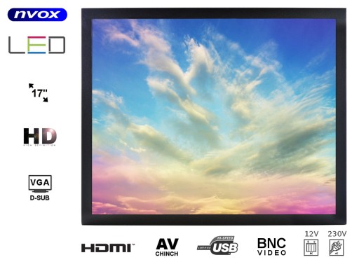 - markowa matryca Digital LED Hi-Contrast o podwyższonej jasności, kontraście oraz ostrości- zwiększona czytelność ekranu w słońcu- zaawansowany wysokoprzepuszczalny filtr kolorów- specjalna ramka pozwala dowolnie zabudować monitor- solidna metalowa obudowa- wejście VGA- wejście DVI- wejście HDMI- VESA 75mm x 75mm, 100mm x 100mm- idealny do zastosowania w: interaktywny kiosk, automat do gier, POS, stand reklamowy, igentny punkt rmacyjny itp. wyświetlacz cyfrowy LED 17cali, matryca TFT 4:3 (Active Matrix System) matryca TFT 4:3 (Active Matrix System) jasność 500:1, kontrast 1000:1 rozdzielczość 1280 x 1024px tryb HDMI: 480i, 480p, 720p, 1080i, 1080p funkcjonalne proste MENU wejście VGA wejście DVI wejście HDMI systemy: PAL/NTSC pobór mocy < 25W zasilanie: DC 12V / AC 230V kolor czarny waga: ok 1,8 kg wymiary z ramką: szer 413mm x wys 307mm x gr 43mm wymiary wyświetlacza: szer 340mm x wys 274mm wymiary obudowy: szer 375mm x wys 307mm x gr 43mmw zestawie: - monitor, - pilot, - kabel VGA, - kabel HDMI, - zasilacz 230V, - instr obsługi, - paragon lub
