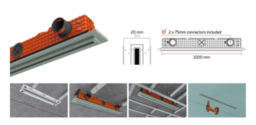 ✅ Dyfuzor SINGLE jest mocowany do betonowego stropu przed instalacją płyt kartonowo-gipsowych.