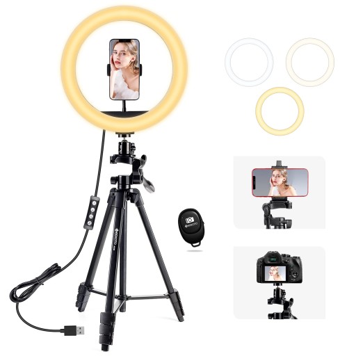 Przyciemniana lampa pierścieniowa LED zawiera: 3 tryby oświetlenia kolorowego: biały, ciepły żółty i ciepły biały. Lampy pierścieniowe Geekoto mogą zaspokoić wszystkie Twoje potrzeby w różnych sytuacjach, zapewniając doskonałe przyciemniane oświetlenie, aby uniknąć niepotrzebnych cieni i uwydatnić szczegóły twarzy podczas fotografowania.