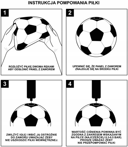 UWAGA! Piłkę należy pompować tylko zwilżoną wcześniej igłą! Pompowanie suchą igłą może trwale uszkodzić wentyl.