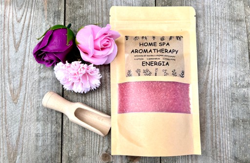- aromaterapeutyczna, naturalna sól morska z olejkami eterycznym: cytryna, pomarańcza, ylang-ylang, op. 250 g,