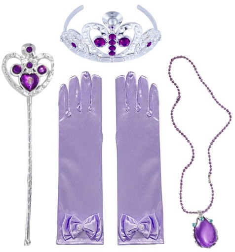 - Berło,amulet, diadem i rękawiczki pozwolą poczuć się każdej dziewczynce jak prawdziwa księżniczka z bajki. Zestaw idealnie sprawdzi się na balu karnawałowym lub przyjęciu urodzinowym, ale także podczas codziennej zabawy