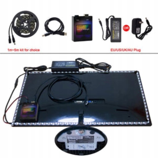 - Łatwa instalacja : taśma LED ma 13,2 stopy i może być cięta nożyczkami na śladach cięcia (białe linie), aby zastosować się do zalecanego urządzenia telewizora. USB ma 16 cali. Użyj kleju 3M. Nie ma potrzeby podłączenia urządzenia, otwierania i urządzenia