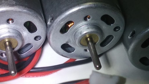 Silniczek zbudowany w oparciu o magnesy stałe oraz wirnik z komutatorem i szczotkami .