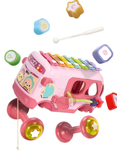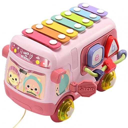 INTERAKTYWNY AUTOBUS SORTER CYMBAŁKI GRZECHOTKI różowy