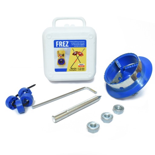Frez wykonany jest z wysokiej jakości tworzywa i elementów stalowych połączonych termicznie, takich jak: stalowa tuleja przelotowa z trzema wkrętami blokującymi M8 na kluczyk imbusowy, podkładkami sprężynującymi, kontrnakrętkami M8 służącymi do mocowania wiertła oraz wewnętrznych ostrzy skrawających i zewnętrznego wieńca skrawającego ze stali szybkotnącej.