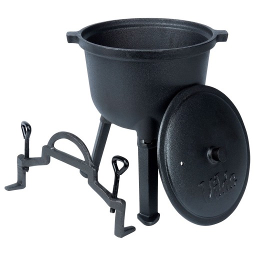 Okrągły kociołek żeliwny na nóżkach z pokrywką i uchwytem do zawieszenia. Idealny do gotowania, pieczenia, duszenia oraz smażenia potraw na ognisku, grillu lub nad otwartym ogniem. Potrawy przygotowane w kociołku będą soczyste i aromatyczne. Przydatny w trakcie różnego rodzaju spotkań, uroczystości czy imprez organizowanych na świeżym powietrzu. Oryginalny produkt marki Vilde z linii Cast Line. Wyprodukowano zgodnie z europejskimi standardami.