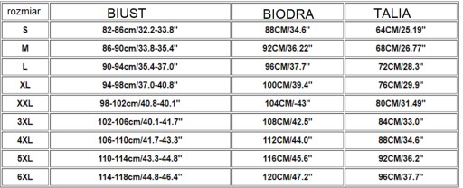 Poniżej tabela rozmiarów. Prosimy o dobór właściwego rozmiaru.