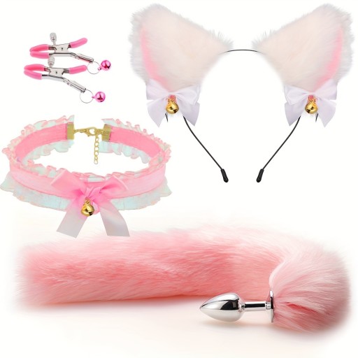 3/4/5 szt. Zatyczka analna z ogonem lisa i Chocker i zestaw opasek na uszy lisa, zabawki erotyczne dla par