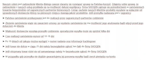 - Prosimy o zapoznanie się z regulaminem przed zakupem
