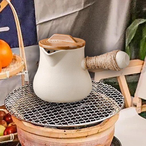 [Z pokrywką]: Ten czajnik do herbaty z uchwytem na pokrywce wykorzystuje piec do grillowania, gotując mleczną herbatę na świeżym powietrzu, co pozwala zachować smak herbaty i mleka.