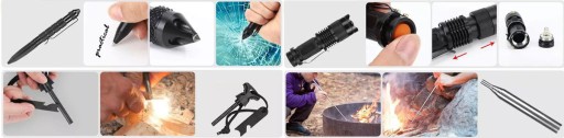 Bogaty zestaw survivalowy, w skład którego wchodzi:
