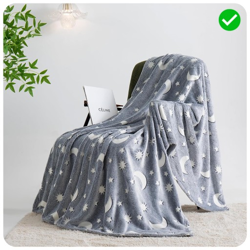 ✅ Wyjątkowy koc wykonany z materiału ze świecącymi wstawkami zapewnia spokojny sen! Luminescencyjne wstawki będą w nocy wytwarzać uspokajającą, jasnozieloną poświatę!