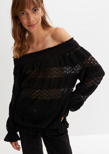 B.P.C czarna bluzka carmen z koronką ^44/46