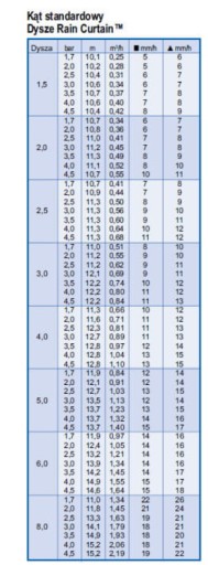 - Dysze Rain CurtainTM o standardowym kącie: 25 stopni