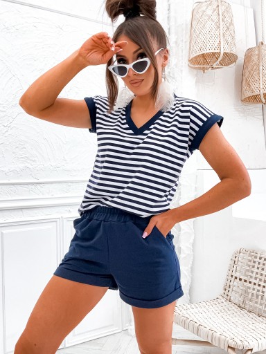 КОМПЛЕКТ БЛУЗКИ КОРОТКИЕ ШОРТЫ ХЛОПКОВЫЕ ЦВЕТА ШОРТЫ В ПОЛОСКУ S / 36