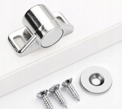 Pakiet zawiera: 4 x magnetyczne zatrzaski do drzwi, 12 x śruby