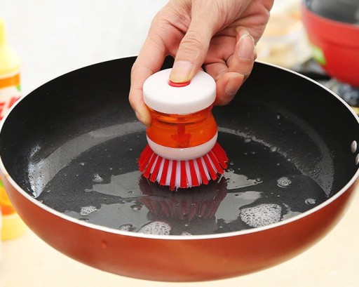 - Łatwa do napełniania szczotka do mycia – nigdy więcej nie bój się robienia naczyń dzięki tej gąbce. Możesz napełnić uchwyt ulubionym płynem do mycia naczyń, który zostanie automatycznie dozowany przez głowicę gąbki podczas szorowania naczyń. Dzięki temu mycie naczyń jest dziecinnie proste, ponieważ plastikowy uchwyt zapewnia doskonałą kontrolę. Gdy głowa gąbki się nosi, możesz ją po prostu odpiąć i zastąpić na nowy wkład.