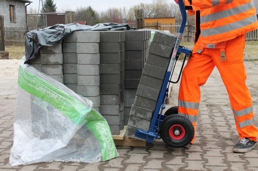 Wózek brukarski / Wózek do kostki brukowej TRAK-BUD. To wózek do szybkiego transportu kostki brukowej na miejsce pracy.